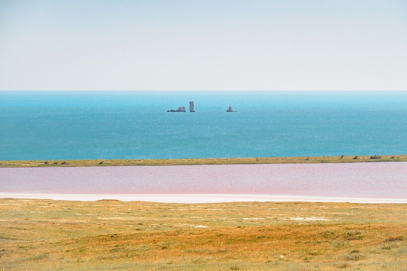 - полюбоваться скалами-кораблями, которые находятся в 4 км от косы, разделяющей Кояшское озеро и море.