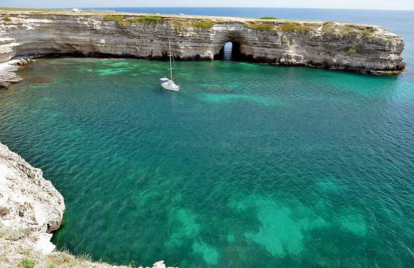 Самое чистое море в Крыму находится на побережье мыса Тарханкут. Это по-настоящему райское место, привлекает туристов — любителей дикого отдыха. Высококлассной туристической инфраструктуры ожидать не стоит, практически все пляжи дикие, добраться можно только на авто или пешком, однако усилия, которые будут потрачены, того стоят. Пляжные зоны песчано-галечные, чистые. Песчаные находятся рядом с поселками, галечные — вдали от населенных пунктов. Одними из самых популярных среди туристов с детьми в Крыму являются пляжи Оленевки — вход в море пологий, глубина небольшая, благодаря чему купаться комфортно. Купальный сезон здесь открывается еще в мае, ведь благодаря мелководью вода быстро нагревается до + 25 °C. Вода в море прозрачная, реки рядом отсутствуют, людей мало. Мыс Тарханкут в Крыму — идеальное место для погружения под воду, которое, как магнит, притягивает любителей дайвинга.