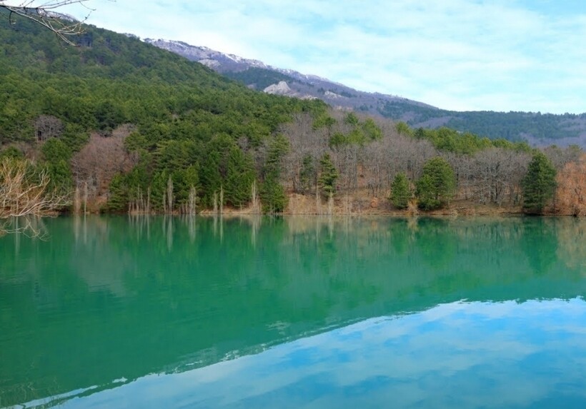 Из Ялты добираться чуть дольше, надо ехать по автомагистрали Е-105, а возле поселка Пушкино свернуть на Запрудное. Водоем находится напротив посёлка. Советуем вбить в навигатор координаты озера Бирюзовое, чтобы не заблудиться — 44°35’57.7″N 34°18’23.2″E.