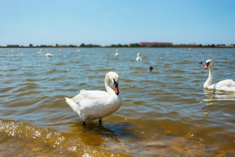 Еще одна причина посетить водоем — лебеди, которые обитают здесь круглогодично. Наблюдать за ними любят и гости солнечного полуострова, и жители соседних Саки и Евпатории. Птицы не боятся людей и поэтому с удовольствием принимают угощения.