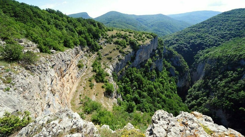 Искать самое масштабное на полуострове ущелье нужно по географическим координатам 44.5302616040, 34.0198381061 на краю Ай-Петринской яйлы.