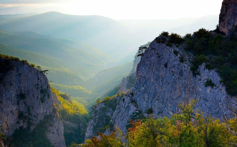 Идя по тропе правого борта, вы сможете сделать красивые панорамные фото Большого каньона Крыма со смотровых площадок или с утеса Сторожевой.