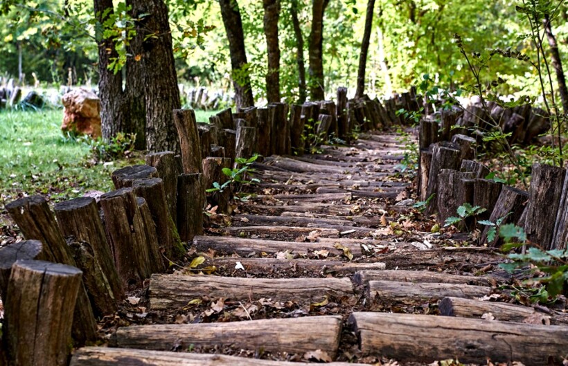 ЭТО ИНТЕРЕСНО! На массажную тропу нельзя заходить в обуви. Массажный эффект от ходьбы по дубовым поленьям можно получить только босиком.