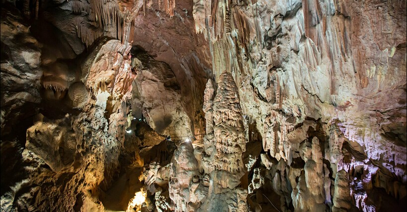 ЭТО ВАЖНО! На верхнем горизонте запрещено делать фото Скельской пещеры в Крыму со штатива, но без длительной выдержки сфотографировать сталактиты и сталагмиты сложно.