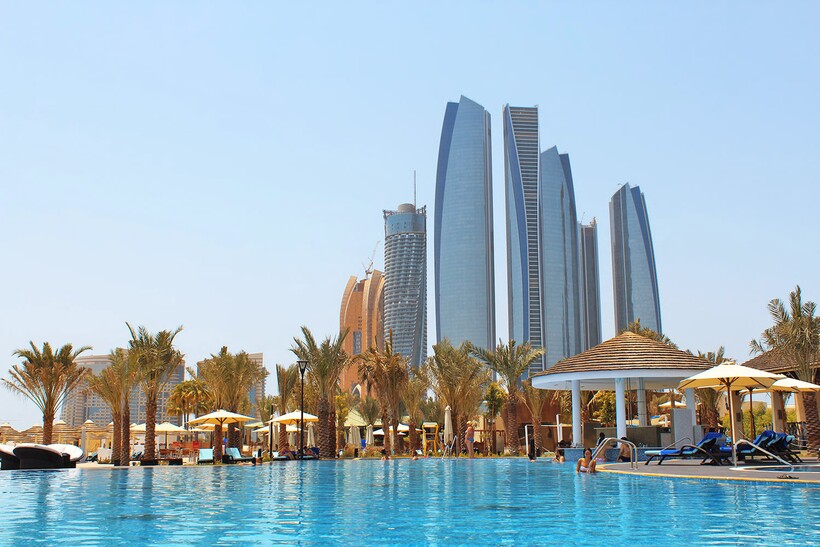 ОАЭ. Средняя температура воздуха составляет +32 °С, воды — +26,2 °С. Комфортнее всего загорать на песке и купаться в море в эмиратах: