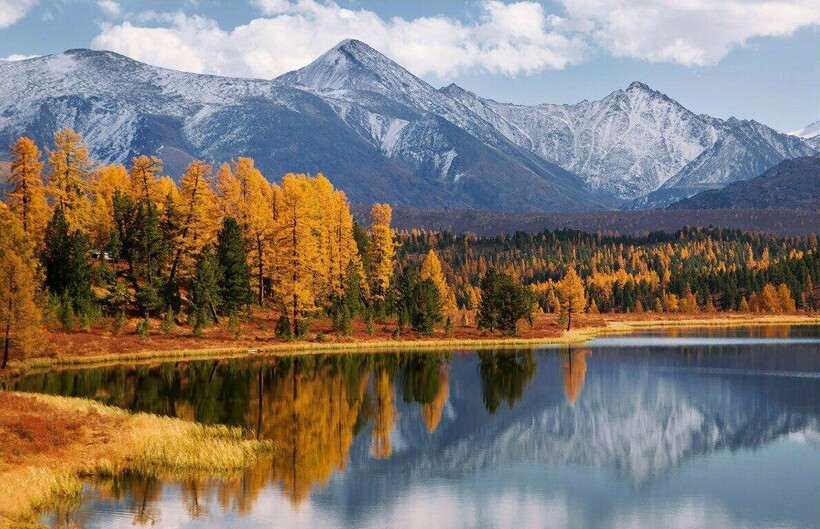 Горный Алтай — природная достопримечательность России. Путешествуя по региону осенью, туристы могут наблюдать живописные виды на горы и долины, покрытые разноцветными лесами.
