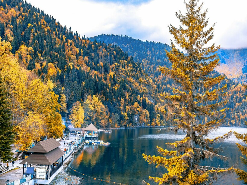- Абхазия — прекрасный вариант для отпуска, россияне выбирают это направление из-за относительной дешевизны отдыха. В октябре здесь достаточно тепло, температура воздуха варьируется от +17 °C до +22 °C. Если вас интересует пляжный отдых, в Абхазию стоит ехать в начале месяца, когда вода еще прогрета до +23–24 °C. Во второй половине октября можно полюбоваться природными красотами Абхазии: горами, пещерами и озерами, а также посетить культурные и исторические памятники.