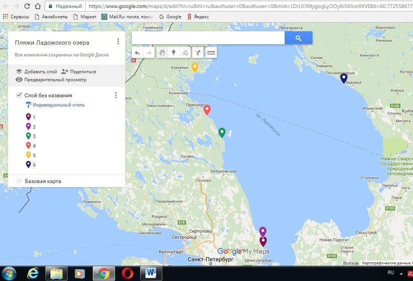 После города Олонец начинаются болотистые районы, занимающие практически всё южное побережье Ладоги вплоть до Шлиссельбурга. Для того, чтобы вам было проще соориентироваться, помещаю карту. Хочу подчеркнуть, что это лично мой набор приемлемых мест пляжного отдыха, думаю, вы понимаете, что купаться при желании можно на любом отрезке побережья Ладоги.