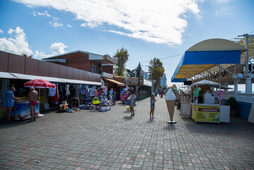 Приморский променад является центром курортной жизни микрорайона. Поселок вытянулся вдоль моря на 10 км, но общая длина набережной в Лазаревском составляет только 1 км.
