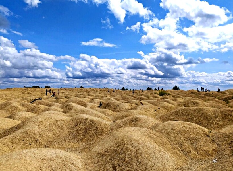 По дороге к пляжу можно сфотографироваться на известняковых холмах, издали похожих на песчаные барханы. Здесь можно изобразить, что вы находитесь в безлюдной пустыне, а не в 70 километрах от Санкт-Петербурга.