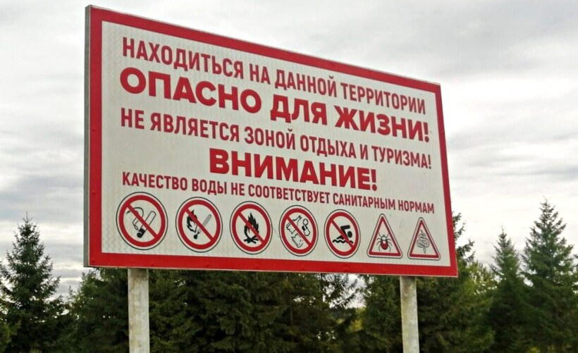 На Борницких озерах нет раздевалок, шезлонгов, буфетов. Еду, коврики, воду нужно нести с собой. Об опасностях озерной воды предупреждает плакат на терриконе.