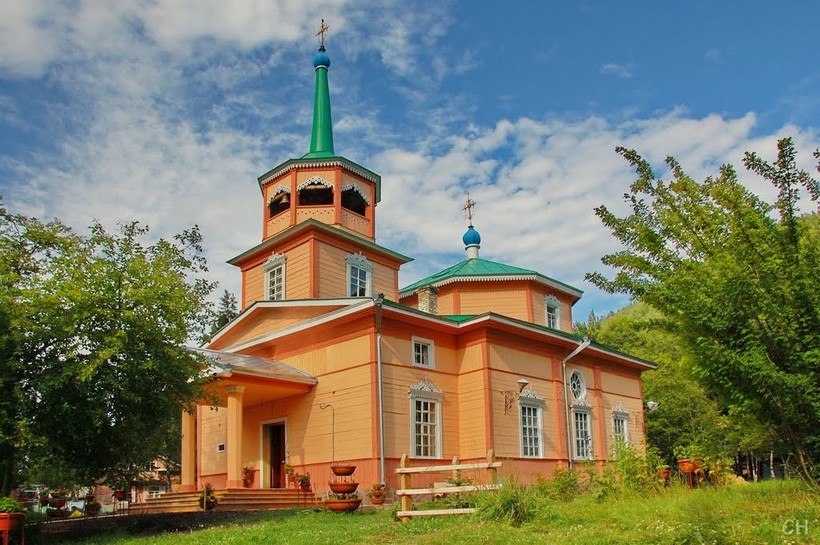 Среди холмов посёлка притулилась небольшая церквушка. Первый раз я побывала в нем ещё в раннем детстве и у меня с тех пор остались очень светлые впечатления. В те времена храм был небольшой деревянной сельской церквушкой, полной романтического и наивного (в хорошем смысле) деревенского духа.