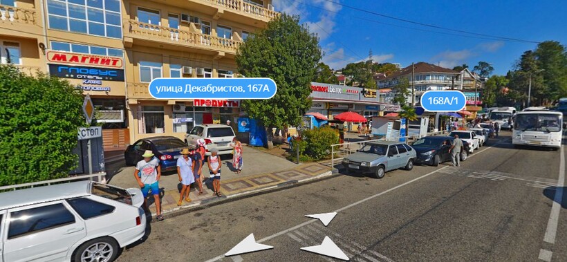 Вторая веб-камера на «Магните» охватывает западный участок ул. Декабристов, панораму моря и несколько частных домов на первой линии. В онлайн-режиме через эту камеру можно видеть и остановку общественного транспорта «Горный воздух» (рядом с рынком).