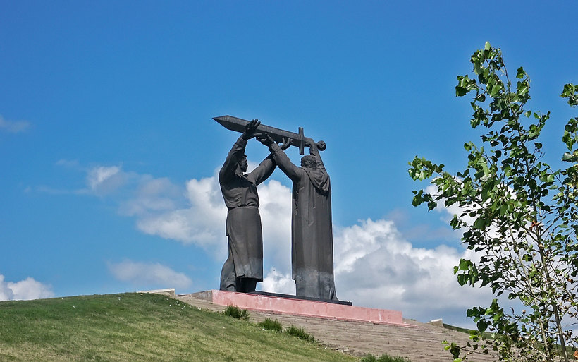 Памятник «Тыл — фронту». Это о нем, наверное, можно сказать строчками из песни «День Победы»: «...не смыкала наша Родина очей»: труженики Магнитогорска внесли весомый вклад в Победу над немецкими оккупантами. В их честь и был создан бронзовый памятник высотой 15 метров. Установили его в 1979 году на искусственно возведенном холме на берегу реки Урал.