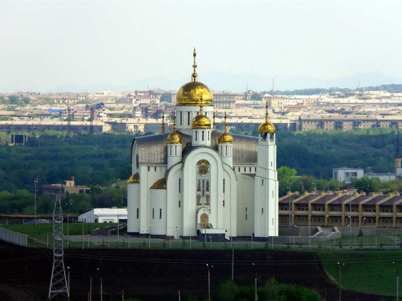 Снова возвращаемся по проспекту Ленина назад, к Ледовому дворцу, огибаем его и оказываемся перед семикупольным собором Вознесения Господня. Самый красивый храм, который я видела в своей жизни! На нем мы и закончим нашу экскурсию по городу — лучшей достопримечательности за один день здесь не найти.