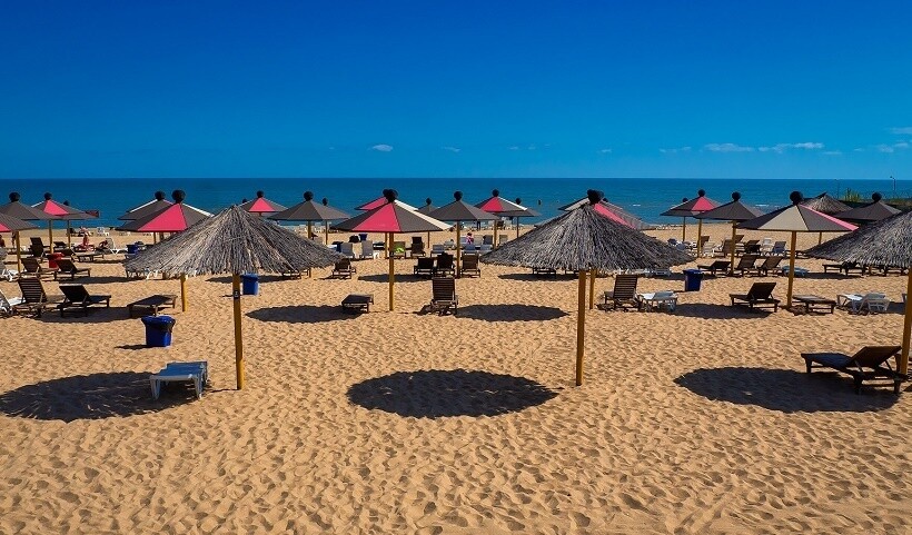 - «Джами» относится к территории гостиничного комплекса, находится на закрытой территории и считается одним из самых комфортабельных мест на побережье. Вход бесплатный только для гостей комплекса, все остальные могут пройти на пляж за плату — 400 рублей за человека. Здесь вам предоставят шезлонг и зонтик, защищающий от солнца. Можно пользоваться спорткомплексом и детской площадкой, а если проголодаетесь, то в местном кафе можно подкрепиться.