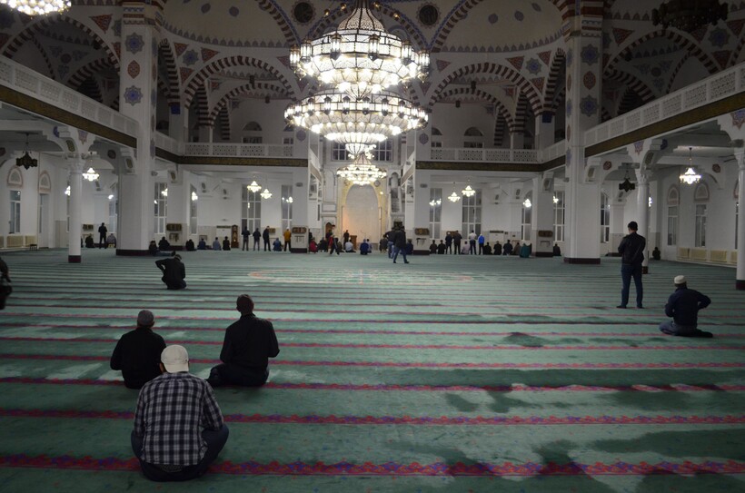 - Время. Визит нужно спланировать так, чтобы он не совпал с молитвенными часами — намаз в Джума-мечети в Махачкале, — особенно в полдень пятницы, когда залы переполнены верующими.