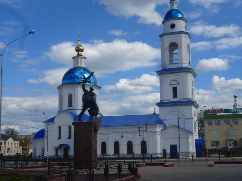 - 15.00 — продолжаем осмотр достопримечательностей. У кинотеатра (ул. Калужская 6) установлен памятник основателю города Владимиру Храброму-Донскому.