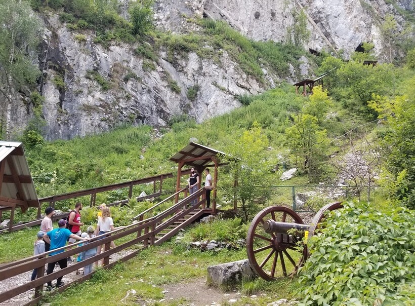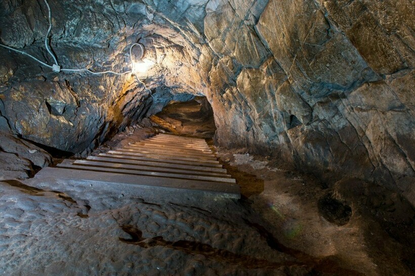 Интересен «Мраморный» туннель, получивший название из-за своеобразной окраски горных пород.