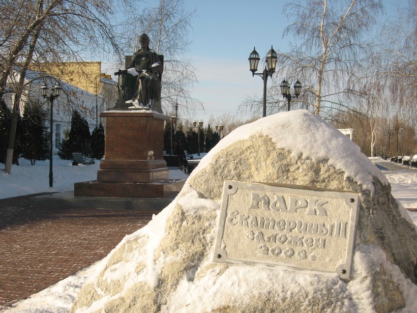 - Самым интересным монументом Маркса мне показался памятник Екатерине II. Считается, что своим манифестом о разрешении иностранных поселений она поспособствовала образованию этого города. Первый памятник создал барон фон Клодт в 1851 году, его творение было обнесено оградой. К сожалению, в годы Второй Мировой войны статую переплавили для нужд фронта. Она была вновь изготовлена только в 2007 году, по старым фотографиям.