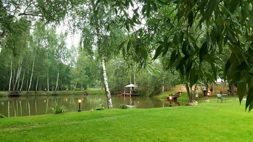 На расстоянии 2,6 км от вейк-парка — это 10 минут езды на автомобиле, находится еще одно место для организованного отдыха турбаза «Берлога». Здесь отдыхающие могут не только насладиться природой района, но и арендовать беседку. В стоимость аренды включены: