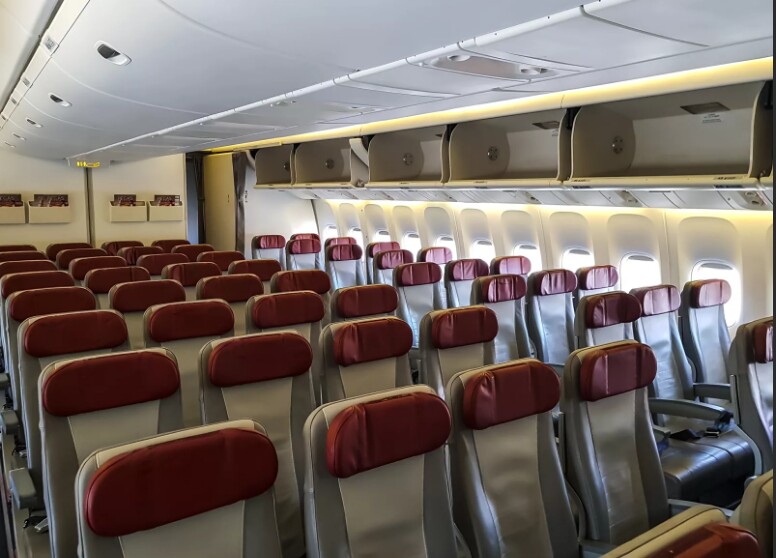 Пассажиры считают, что салон «Боинг» 777-300ER очень просторный. Полки для ручной клади расположены удобно: они опускаются, не нужно тянуться, чтобы до них достать. В стоимость авиабилета входит багаж, поэтому лишних сумок в салоне нет. Вместительный салон экономкласса, по отзывам, имеет как достоинства, так и недостатки. Хорошо, что места много и шаг между креслами увеличен. Из-за того, что народа помещается много, бывает шумно, связанный с этим дискомфорт не зависит от места в салоне. Любителям тишины лучше заранее позаботиться о берушах.