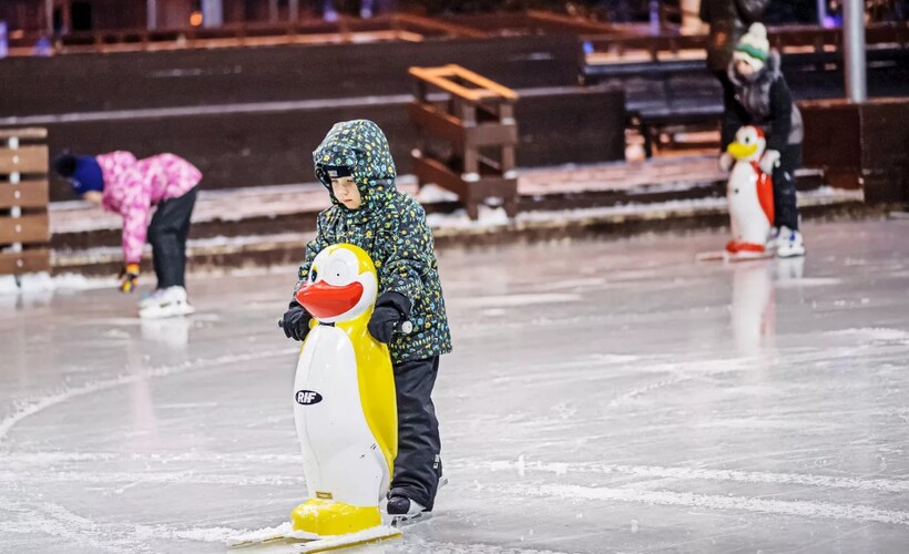 - интерактивная площадка «Лес чудес» (батуты, водные аттракционы, зимой — ледяные горки);