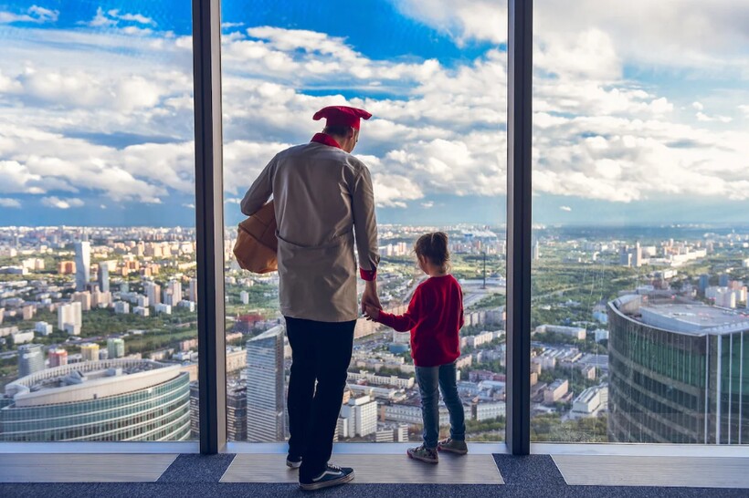 В любом возрасте хочется взглянуть на столицу с высоты, захватывающей дух. PANORAMA 360 в Москва-сити дает такую возможность. Это сама высокая смотровая площадка в Европе, находится на 89-м этаже башни «Федерация-Восток», в 4 км от Кремля, обзор Москвы с площадки — на 360 градусов.