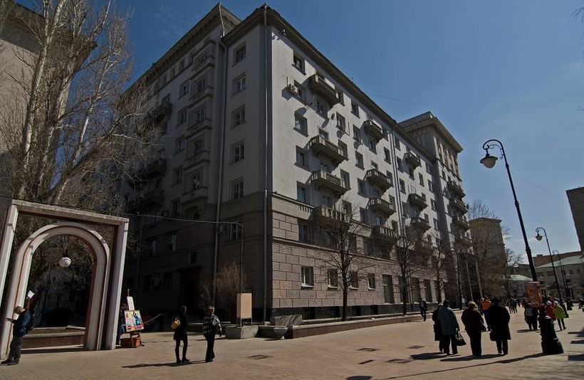 Прямо напротив вы можете увидеть памятник уже советской архитектуры — "Дом писателей". Это грандиозное здание строилось с тридцатых по пятидесятые годы 20-го века. Здесь жили такие выдающиеся люди, как Илья Ильф, Лев Кассиль, Валентин Катаев, Борис Пастернак, Михаил Пришвин и многие другие.