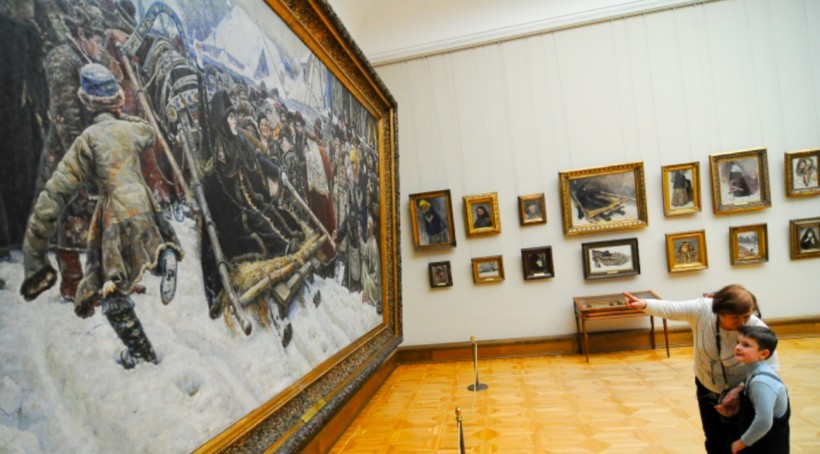 Следующие залы представляют нам работы таких мастеров реалистического течения в живописи, как В.И. Суриков. И.Е. Репин, Н.Н. Ге. Живые портреты современников чередуются с картинами на сюжеты из истории России. Здесь и «Боярыня Морозова» (на фото выше), отправленная в ссылку, и «Меньшиков в Березове», и «Утро стрелецкой казни», и «Иван Грозный и сын его Иван», и «Запорожцы пишут письмо турецкому султану».