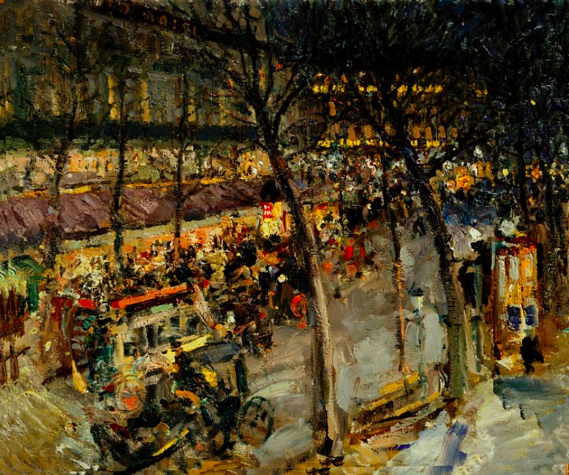 В залах № 40-41 представлены работы В.А. Серова, в том числе и «Девочка с персиками». Судя по проходящей в Третьяковской галерее зимой 2016 года выставке, этот художник пользуется огромной популярностью у москвичей. Однако лично мне гораздо интереснее было изучать работы К.А. Коровина (зал № 42), которые намного лучше соотносятся с тенденциями в мировой живописи того времени. Его техника — работа с мазками-цветовыми пятнами — позволяет не столько увидеть детали, сколько понять общее настроение и движение, энергетику картин. На иллюстрации ниже — его работа «Париж. Кафе де ля Пэ».