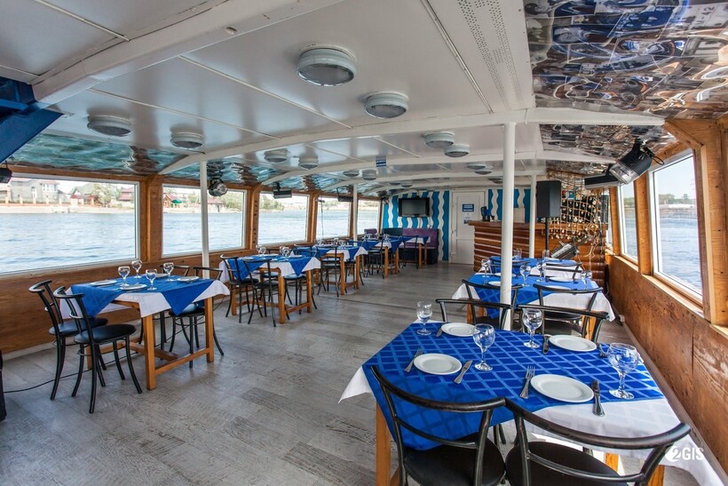 Подниматься на борт речного трамвайчика со своей едой, водой и спиртным запрещено правилами. На судне есть кафе-бар, где при желании можно перекусить. В меню чипсы (150 ₽), сухарики (100 ₽), орешки (100–200 ₽), шоколад (100–200 ₽), холодные напитки (100–250 ₽).