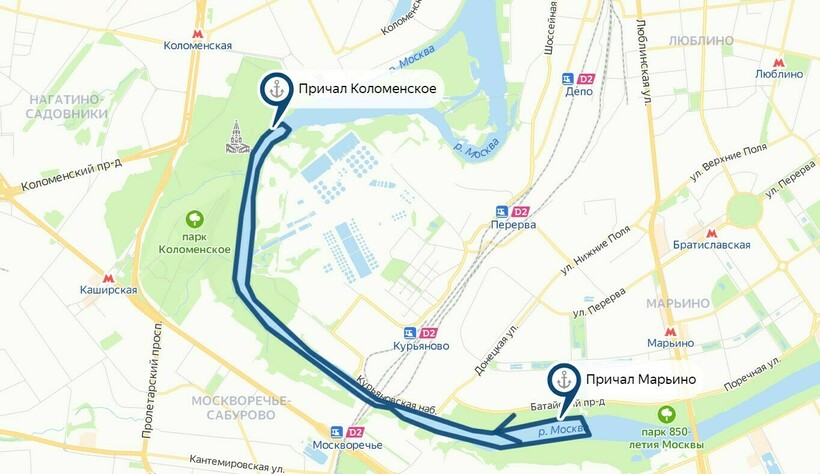 Теплоход Марьино — Коломенское — Марьино курсирует в акватории шириной до 250 м.