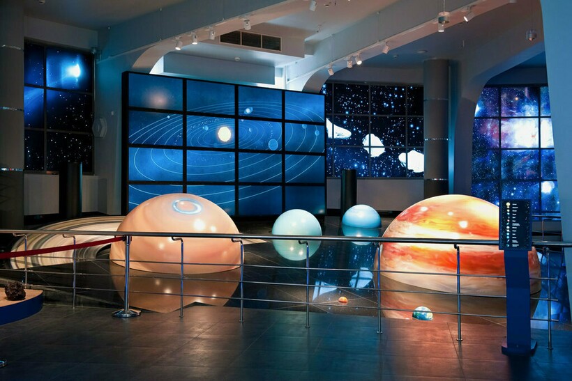 Это интерактивный музей (планетарий в Москве) с экспериментальной площадкой, где любознательные посетители могут потрогать экспонаты руками и убедиться, что в вакууме перо и камень падают с одинаковой скоростью, а также научиться управлять стыковкой модуля с космической станцией.