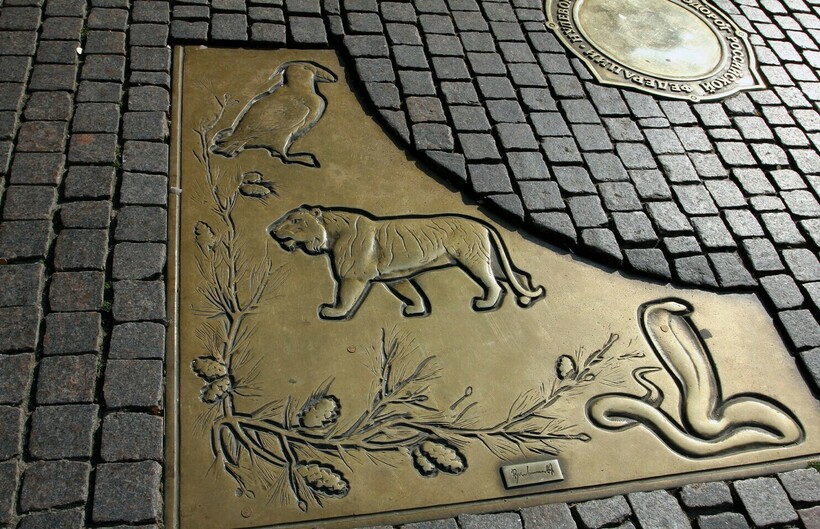 Из-за большого количества желающих загадать желание восьмиконечная звезда (роза ветров) практически стерта.