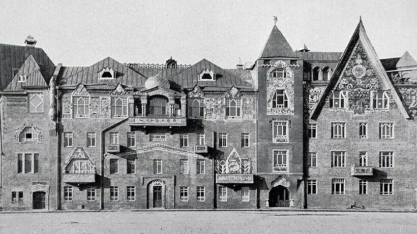 ЭТО ИНТЕРЕСНО! Перцов случайно увидел эскиз Малютина, который тот не отправил на конкурс, так как посчитал негодным. Железнодорожный магнат пришел от него в восторг. В дальнейшем художник доработал проект, и получилось гармоничное смешение русского стиля с модерном.