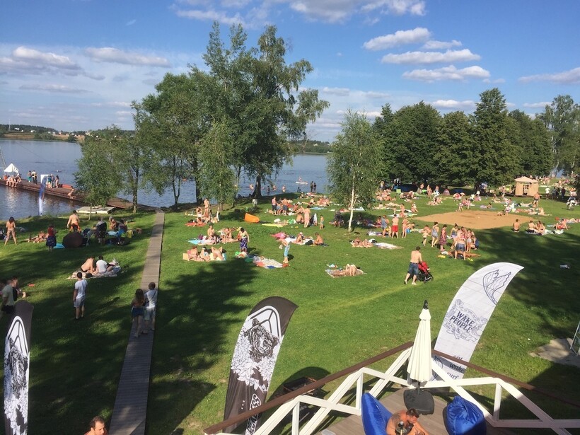 Владельцы этой базы отдыха оборудовали пляжную зону, вход туда бесплатный, открыт для всех туристов. Правда, пляж здесь не песчаный или галечный, а травянистый, обеспечен всем необходимым для комфортного отдыха: лежаками, зонтиками, беседками. Работает кафе, в наличии много развлечений, как на воде, так и на суше. Посетителям предлагается сыграть в футбол или в волейбол, взять в аренду лодки или катамараны, устроить пикник в специально отведенной зоне.