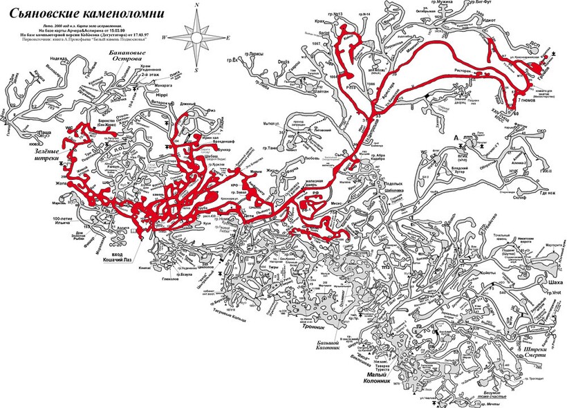 Спелеологи составили подробную карту ходов, гротов и достопримечательностей Сьяновской системы. На карте указан единственно возможный вход в «подземное царство», по нему спустятся даже подростки.