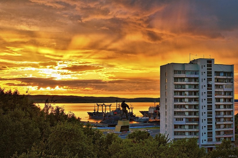 Мурманск — самый крупный по численности населения в мире город, расположенный за Полярным кругом. Находится он на побережье Кольского залива Баренцева моря. Здесь же базируется крупнейший в России морской торговый порт. Именно с него я начинала свое знакомство с городом. Сделать это очень удобно —достаточно доехать до памятника «Алеша», с площадки которого и открывается прекрасный вид на порт и Кольский залив.