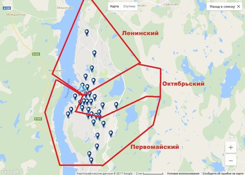 Вариант для настоящих путешественников. Мурманск и Москву разделяют почти 2 тысячи километров, время в пути составит около суток (и это при условии постоянного движения). Однако можно совместить поездку до Мурманска с посещением других городов. Есть два варианта маршрута на выбор — через Ярославль и Вологду или в сторону Санкт-Петербурга через Тверь и Волхов (возможны участки платных дорог). Оба этих направления пересекаются в небольшом городке Карелии — Медвежьегорске. Отсюда по съезду направляйтесь в сторону Мурманска сначала по автодороге А-119, а затем по Е-105 (Р-21). Ниже на карте представлена схема маршрута.