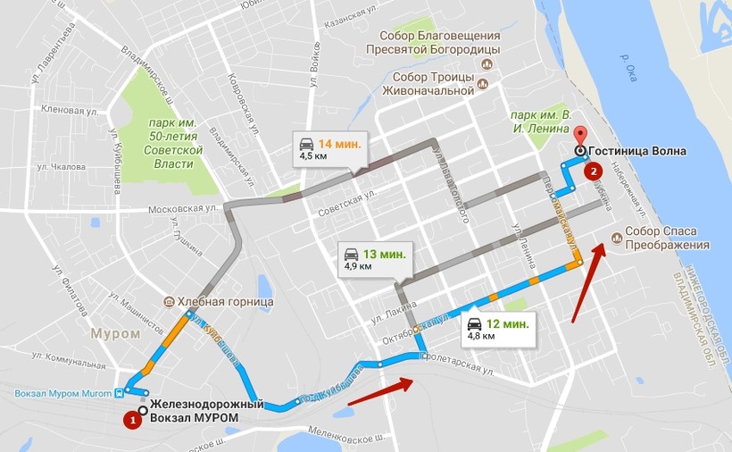 Кроме того, в любую точку Мурома вы прекрасно доедете на автобусах №№ 12, 1, 20. Ближайшая остановка так и зовется «Автовокзал».