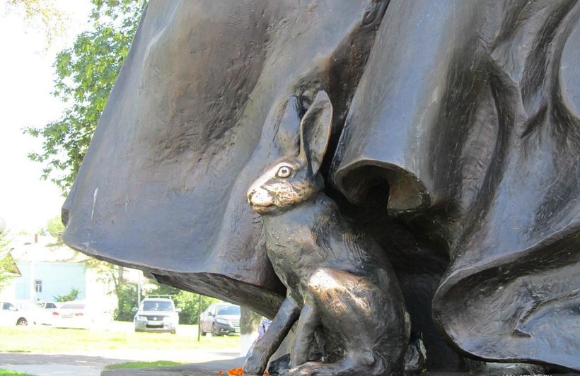 К слову, о местной традиции. Муромчане (или же туристы, как знать?) решили, что если погладить зайчика, присевшего у ног княжеской четы (памятник Петру и Февронии у Свято-Троицкого монастыря), то удача будет непременным вашим спутником. Вот носик у этого ушастика уже и отполирован руками соискателей халявного счастья.