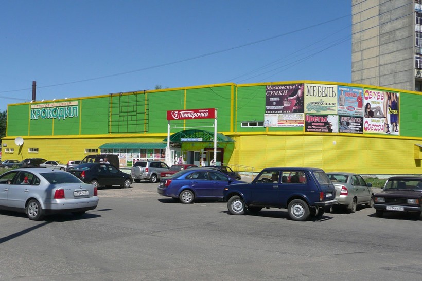 ТЦ «Крокодил» на ул. Кленовой, 32а. Здесь есть универсам «Пятерочка», отделы одежды, обуви, бытовой техники. Представлены посуда и сувениры, домашний текстиль, ветеринарный магазин и аптека. Открыт с 09:00 до 20:00.