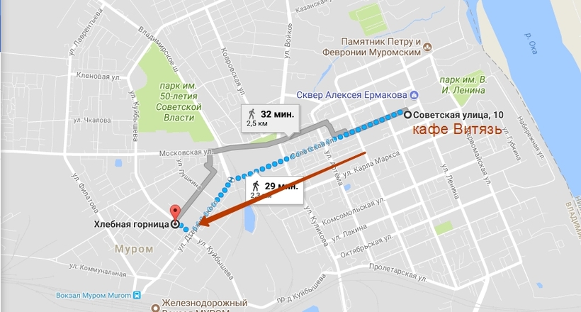 Доехать в старинный Муром-град вы можете на автобусе, поезде или личном (дружеском, попутном) автомобиле. Город находится достаточно близко к Москве (315 км) и, следовательно, довольно далеко от Петербурга (1050 км). Мы, живя именно в Питере, всегда совмещали визит в Муром с какой-то дальней поездкой по России, включающей посещение Владимира, Нижнего Новгорода, Воронежа и других городов. Это очень украшало картину наших путешествий.