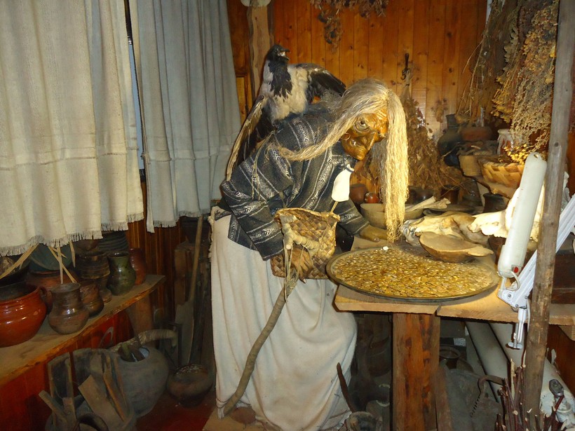Второй зал полностью посвящен Бабе-Яге. Ее скульптура – это, пожалуй, самый мощный экспонат данного мини-музея, на фоне которого не грех сфотографироваться. Тем не менее, экскурсовод, услуги которого входят в стоимость билета, заострит ваше внимание на том факте, что Баба-Яга вовсе не такой уж отрицательный персонаж. Достаточно вспомнить русские сказки, где она, несмотря на угрозы съесть, чаще всего помогает главному герою. Есть мнение, что в дохристианскую эпоху в подобных лесных избушках юноши проходили обряд посвящения в мужчины под надзором жрецов.