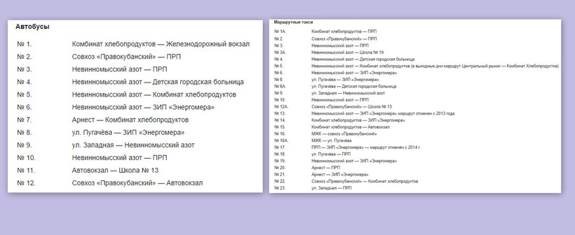 В Невинномысске все передвигаются на автобусах и маршрутных такси, а если куда-то сильно спешат, то вызывают такси. Автобусы и «маршрутки» выходят на рейс с 6 утра и заканчивают движение в 11 вечера.