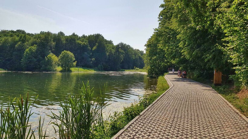 По утоптанным грунтовым дорожкам можно обойти вокруг водоема и найти по указателям в окрестностях: