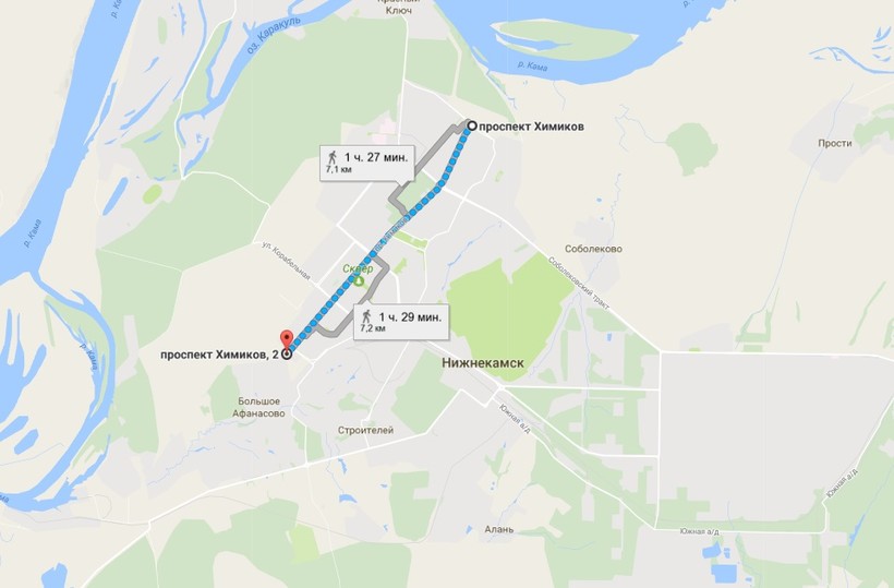 По приезду в Нижнекамск вам не нужно искать автобусную остановку или такси. Город небольшой, поэтому пройдитесь пешком до места ночлега и подышите свежим воздухом.