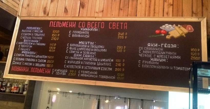 Думаю, что любителей пельменей очень порадует тот факт, что в парке открылась пельменная. Здесь вам подадут и равиоли, и хинкали, и манты, даже яки-гедза и ханум. Врочем, выбирайте на свой вкус на картинке ниже. Как вы заметили, цены вовсе не кусаются. Пельменная находится в самом начале парка с правой стороны.