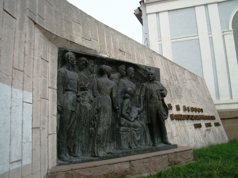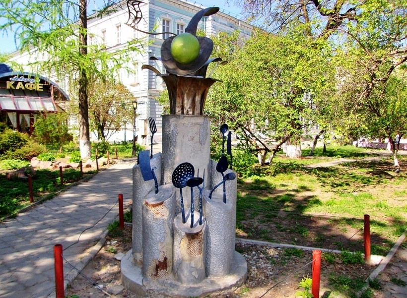 - А какие красивые картины рисуют местные художники! Пейзажи просто великолепны! Кстати, рядом находятся три факультета лучшего университета города: филологический, финансовый и социологический. Зайдя на территорию института, вы увидите необычный памятник Ложке вкуса.